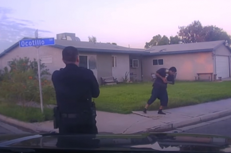 A kaliforniai El Centro rendőrsége kiadta annak az intézkedésnek a testkamerás videófelvételét, melynek során kétszer is rálőttek egy menekülő rablóra, miután az téglát dobott egy járőr irányába.