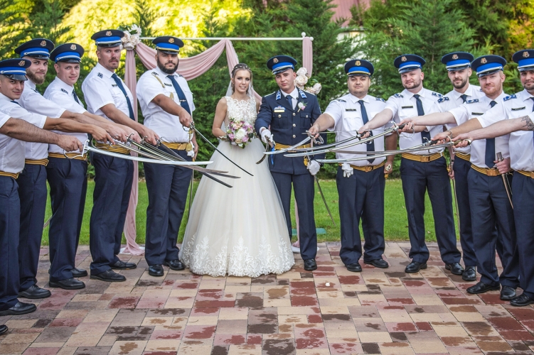 – A sógornőmnél voltunk, és megkért arra, hogy tegyem tisztába a kicsit – folytatja Dalma. – Elkezdtem a babáról leszedni a rugdalózót, amikor a pelenkára tűzve megláttam egy cetlit, amire rá volt írva: „Leszel a feleségem?” Mikor megfordultam, ott térdepelt mögöttem Ricsi gyűrűvel a kezében. Az anyakönyvvezető előtt 2021 nyarán mondtuk ki az „igen”-t, de a lakodalmat csak később, szeptember 18-án tartottuk. Ott voltak a családtagok, a barátok, de a kollégáink is, akik kivont karddal álltak sorfalat nekünk.