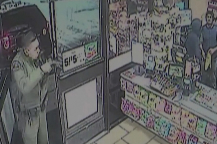 „Már parkolás közben felfigyeltem arra, hogy kocsi áll a bejáratnál, és próbáltam belesni az ablakon, de a sok reklámplakát miatt nem volt jó rálátásom, de ahogy beléptem, rögtön felismertem, hogy rablás van folyamatban – idézte fel Luis Cisneros, Los Angeles megyei seriffhelyettes, aki a riportokban azt is elismerte, hogy egy pillanatra összerezzent. Bár már kilenc éve szolgál járőrként, ez volt az első alkalom, hogy belesétált egy rablásba. „Négy maszkos fickó tartózkodott az üzlet pult mögötti részén, és nagy rámolásban voltak, kettejüknél fegyvert is láttam. Rögtön a szolgálati fegyveremért nyúltam, és az ingemre erősített rádión keresztül erősítést kértem, majd rögtön rájuk kiáltottam.”