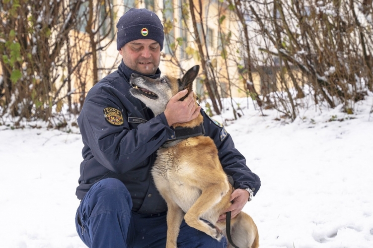 – Akkor éppen nem volt rendőrkutyám, mert nem sokkal korábban meghalt a sajátom – meséli a törzszászlós. – Szóltak, hogy van egy Dunakeszin, ha gondolom, nézzem meg, de nem biztos, hogy alkalmas lesz majd erre a feladatra. Nem volt kétségem afelől, hogy mindenképpen megpróbálom vele. Szerencsére szinte azonnal egymásra találtunk. Ahogy meglátott, egyből a nyakamba ugrott, én pedig feltettem rá a pórázt. Rögtön látszott, hogy kivételesen tehetséges, és nagyon jó párost alkotunk majd ketten. Rendkívül szorgalmas volt, hatalmas elánnal vetette bele magát mindig a munkába. Sikeres kiképzése után Tina általános rendőrkutya lett járőr- és nyomkövetői feladatokkal. 2015–2016-ban a legeredményesebb rendőreb volt az országban. Szinte bármikor be lehetett vetni, és teljesen megbíztam benne. Tudtam, hogy a rábízott feladatot mindig maximálisan el fogja látni. Úgy összecsiszolódtunk az évek során, hogy már egy rezdülésemből érezte, mit szeretnék, nem volt szükség vezényszavakra. Sokszor védett meg; ameddig a póráz elért, tökéletes biztonságban lehettem. Senkit nem engedett a közelembe. Amikor nyomot követtünk, ügyet sem vetett a körülöttünk lévő kóbor kutyákra, a feladat szent volt számára. Soha nem volt még ennyire irányítható kutyám. Tina több versenyen is dobogós helyezést ért el. Amire a legbüszkébb vagyok, az a 2015-ben Dunakeszin megrendezett Nemzetközi Szolgálati Kutyák Versenye, ahonnan az első helyet hoztuk el járőr kategóriában.