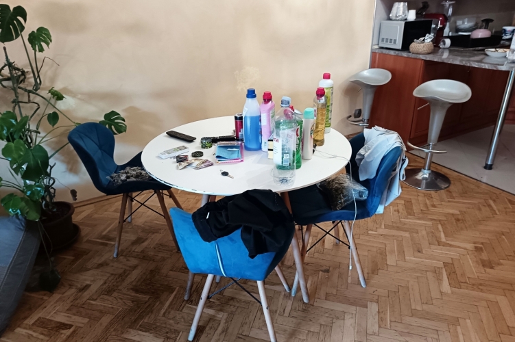 – Ahogy beléptünk, az étkezőasztal mellett, az egyik széken találtunk előkészítve, kiporciózva mintegy 300-400 gramm marihuánát, valamint több száz önzáró tasakot – folytatja Pék Veronika őrnagy, csoportvezető. – Kérdésünkre a férfi azt állította, hogy nincs több drog a lakásban, azonban a kábítószer-kereső kutya bevetésével több félkilós, bontatlan csomagban droggyanús anyag került elő.