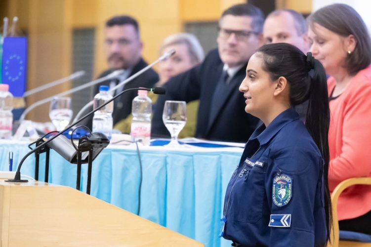 A roma származású fiatalok rendőrré válását támogató pályázat céljáról és eddigi eredményeiről beszélt Pinczésné Kiss Klára ezredes, majd néhány személyes történet hangzott el a rendőrjárőr-képzésben jelenleg résztvevő fiataloktól. Megindító történetek arról, hogyan jutottak a mélyszegénységből, vagy egyszerűen csak a szegénységből a rendőrségi tanulmányokig. Egyikük így fogalmazott: „Az elszántságom erősebb volt, mint a körülményeim…”, és alighanem ez jellemző valamennyiükre.