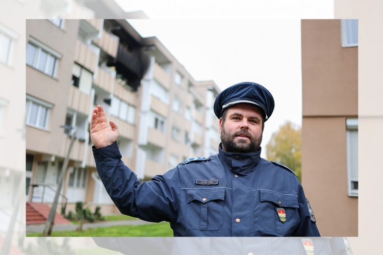 – Ahogy odaértünk, láttuk, hogy a harmadik emeleti lakás erkélye már lángokban áll – meséli a törzsőrmester. – A lakók már kint voltak, tőlük tudtuk meg, hogy egy idős nő még a lakásban tartózkodik. Próbálták betörni az ajtót, de nem sikerült. A kollégáimmal azonnal felszaladtunk az emeletre. Először vállal próbáltam betörni a bejárati ajtót, azonban nem jártam sikerrel. Ezután lábbal kezdtem rúgni az ajtót. Végül sikerült akkora lyukat ütni az ajtóba, amelyen keresztül beférhettem.