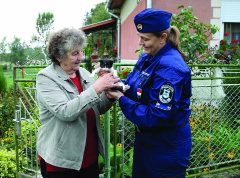 – Még soha nem kellett kiköltöznöm árvízveszély miatt a házamból – mondja a 73 éves, egyedül élő Végi Istvánné, aki zalaszombatfai ingatlanját kényszerült elhagyni. – Ez alatt a pár nap alatt a lányomnál, Lentiben szálltam meg. Minden köszönetem a rendőröké, az állataimat és az értékeimet is óvták, amíg nem voltam otthon. Naponta visszajöhettem velük, hogy megetessem a tyúkokat, a libákat, a malacokat, esténként ők zárták be az ólat. Az unokáim imádott kölyökmacskái és az anyjuk is – szó szerint – megúszták a távollétem.