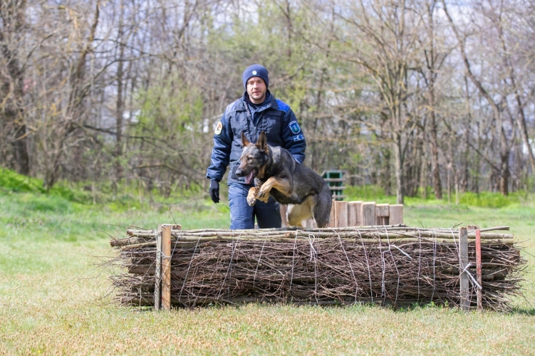 – Az általános kutyavezetői szaktanfolyamot végeztem el a Rendőrségi Oktatási és Kiképző Központ dunakeszi kutyakiképző bázisán, ahol már az első napon megismerkedtem négylábú kollegámmal, a Bene hívónevű, ordas német juhásszal. Nehézkes kezdés után jól kijöttünk, és össze is szoktunk, csak amiatt aggodalmaskodtam, hogy éles helyzetben hogyan tudok majd bánni egy 40 kilós, robusztus erőgéppel. Mert egyenruhában voltam 76 kiló, és ma sem vagyok sokkal több, de belejöttem, és ebben az is benne van, hogy ő is igazodott hozzám – mondta, és első közös bevetésüket is felidézte, melynek során mind a két fázis, azaz a kereső- és a járőrfunkció is jelentőséget nyert. – Az egyik hőkamerázó kolléga rádióforgalmazással jelezte, hogy a D234-es határjelnél nagyobb csoport tért le a Baranyavári útról, amit az eligazítóhelységben hallottunk a szolgálatparancsnokkal. Éppen váltási időben voltunk, úgyhogy kocsiba ültünk, hátul a friss kutyával. A helyszínen Bene rögtön szagot fogott. Hosszú pórázra vettem, és 2 kilométeren át vezetett minket, keresztül a csendes, sötét erdőn, majd amikor egy búzatáblánál megállt, befelé indult a bokrok közé, és a következő pillanatban 15 ember kezdett rohanni tőlünk elfelé, 24-en viszont ott maradtak, és őket kiterelte a búzaföld és a bokrok közötti részre. Nagyon elégedett voltam vele, illetve voltunk, mert Bene a szolgálatparancsnokot is lenyűgözte. Amúgy az a 15 is meglett, akik elszaladtak. Rögtön leadtuk, merre indultak, és a határrendészeti járőrök elfogták őket.
