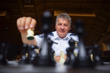 Szűcs Zoltán főhadnagy, a Készenléti Rendőrség (KR) Zenekarának klarinétosa a sakktáblák mellett is megállja a helyét. Azt mondja, tökéletesen kiegészíti egymást a hangok világa és a csend sportága.