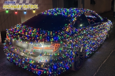 Melbourne-i autópálya-rendőrök eltekintettek a bírságolástól, de arra kötelezték a karácsonyfaként közlekedő BMW sofőrjét, hogy fényképpel igazolja, leszedte a járműről a raktárkészletnyi LED-izzót.