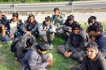 A határsértőket visszakísérik az ideiglenes biztonsági határzárhoz, az embercsempészt őrizetbe veszik a nyomozók.