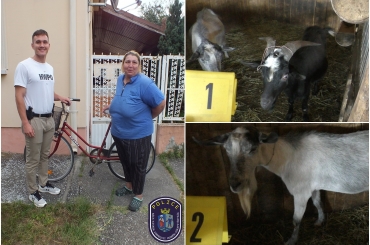 A környék szemfüles rendőreinek hála mind a bicikli, mind pedig az állatok hamar visszakerültek a tulajdonosokhoz.