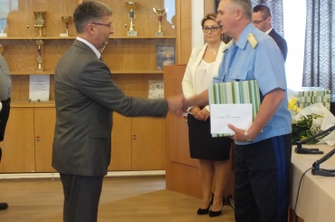 Dr. Gyurosovics József r. dandártábornok, Hajdú-Bihar megye rendőrfőkapitánya emléktárgyakat adott át több kollégájának.