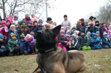 A balmazújvárosi rendőrök és szolgálati kutyáik meglátogatták a gyerekeket.