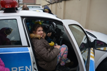 A hajdúszoboszlói rendőrök fogadták a nagyhegyesi diákokat a rendőrkapitányságon.