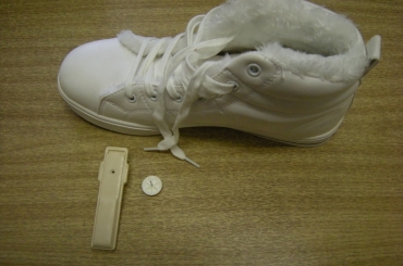 Leharapta a védelmi eszközt a sportcipőről, majd fizetés nélkül akart távozni.