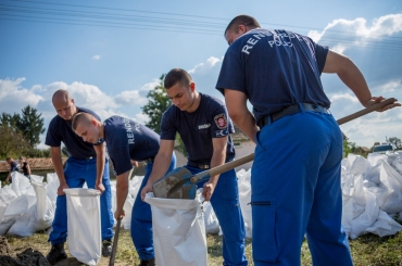 Szegedi rendőrtanulók a Baranya megyei gátakon.