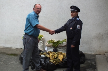 Csehely Edit r. főtőrzsőrmester visszaadta a prügyi dohányföldről szüretelt termést jogos tulajdonosának.