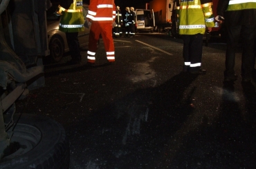 Az autószállító tréler az M1-es autópályán kisodródott és felborult. A mögötte közlekedő kisbusz a járműszerelvénybe hajtott, egy utas a helyszínen életét vesztette, heten megsérültek.