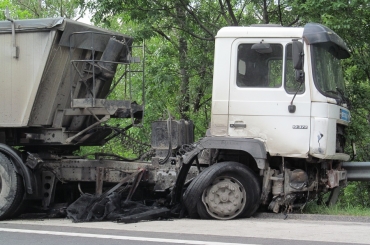 Személyautó ütközött kamionnal.