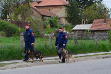 A Készenléti Rendőrség két tapasztalt rendőrkutyája járőrözött Tiszabő településen.