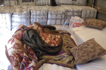 Egy teherautó rakterét tette lakályossá utazásához az afgán házaspár. Tompáig jutottak.