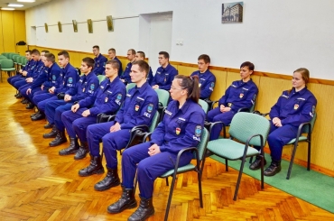 Tizenhét ifjú rendőr a főkapitányságon.