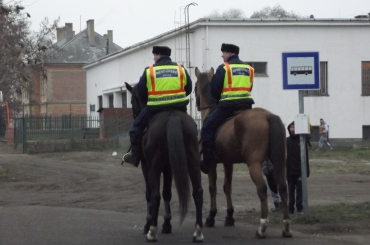Lovas rendőrök járőröznek Nyíregyháza belvárosában az év végi ünnepek időszakában.