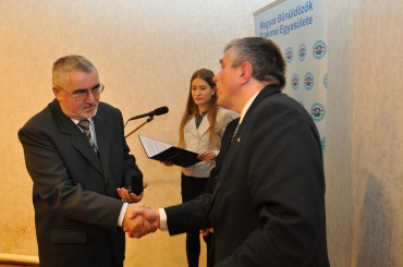 Dr. Dobos János Emlékérmet vehetett át a képen balra látható dr. Hajdú Antal r. ezredes, rendőrségi főtanácsos, a Békéscsabai Rendőrkapitányság vezetője.