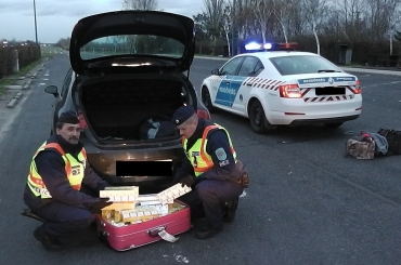 A román férfit európai elfogatóparanccsal körözték, utazótáskájában több mint ötszáz doboz zárjegy nélküli cigaretta volt. A lébényi autópályás rendőrök fogták el.