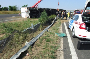 Szalagkorlátnak ütközött egy tehergépkocsi az autópálya Nagykanizsa felé tartó szakaszán.