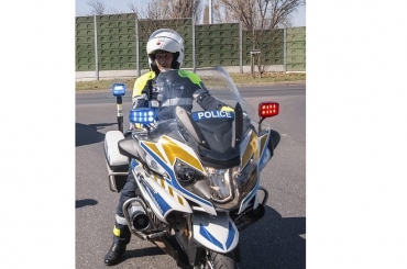 A motoros járőr megkülönböztető jelzést használva vezette fel a lázas csecsemő családját a kórházba.