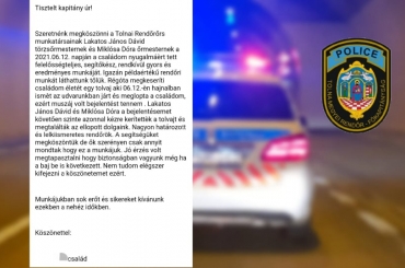 Miklósa Dóra r. őrmester és Lakatos Dávid János r. törzsőrmester gyors és eredményes munkáját köszönték meg.