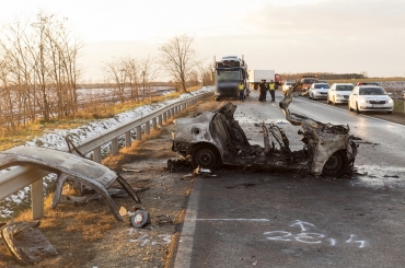 Négy ember vesztette életét az ütközés következtében kigyulladt személygépkocsiban.