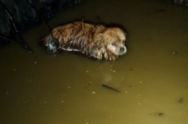 Az eb egy szomszédos ingatlan udvarán esett bele egy 2 méter mély vizes gödörbe.