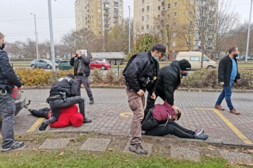 Jogellenesen próbált meg bejutni az országba két határsértő Csongrád-Csanád megyében. A rendőrök feltartóztatták, majd az ideiglenes biztonsági határzárhoz kísérik őket.