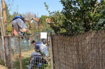 A külföldieket a rendőrök visszakísérik az ideiglenes biztonsági határzárhoz.