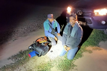 Jogellenesen próbált meg bejutni az országba két migráns Csongrád-Csanád megyében. A rendőrök feltartóztatták, majd az ideiglenes biztonsági határzárhoz kísérik őket.