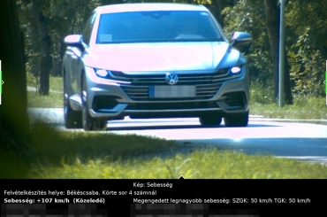 Békéscsabán kettő és fél óra alatt 19 gyorshajtót mértek be a rendőrség sebességmérő műszerei. Volt, aki 50 helyett közel 110-zel hajtott. A gyorshajtás veszélyes, ezért ismételten kérnek mindenkit, hogy közlekedjen szabályosan!