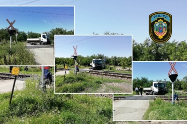 A tehergépkocsi vezetője a tilos jelzés ellenére hajtott a sínekre.