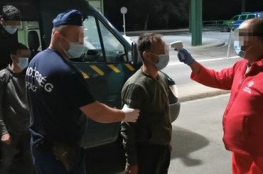 Jogellenesen próbált meg bejutni az országba hat migráns Csongrád-Csanád megyében. A rendőrök feltartóztatták, majd az ideiglenes biztonsági határzárhoz kísérik őket.