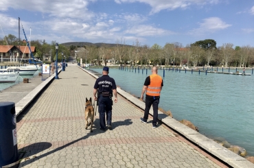 A balatonfüredi rendőrök szolgálati ebeikkel húsvétkor is járőröztek.
