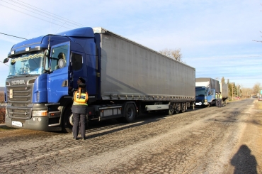 A dorogi járőrök visszatérően ellenőrzik a teherautókat Bajnán.
