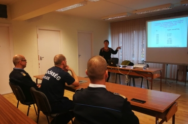 Dr. habil Orsós Anna, a Pécsi Tudományegyetem Romológia és Nevelésszociológia Tanszékének vezetője tartott előadást az egyenruhásoknak.