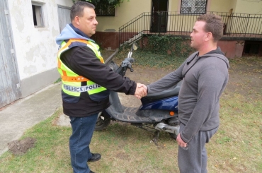 A hódmezővásárhelyi rendőrök visszaadták tulajdonosának azt a robogót, amit korábban a megyei jogú városból tulajdonított el egy helybeli férfi.