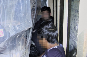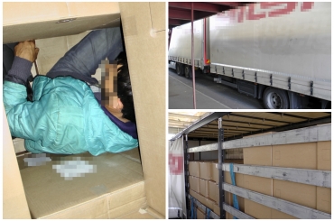 Tompánál egy külföldit találtak elbújva egy tehergépjármű rakománya között. A férfit az egyenruhások visszakísérik az ideiglenes biztonsági határzárhoz.