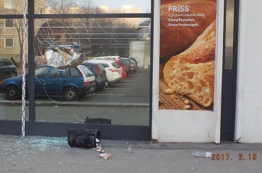 A rendőrök elfogtak egy férfit, aki szemetessel törte be egy győri élelmiszerüzlet kirakatát.