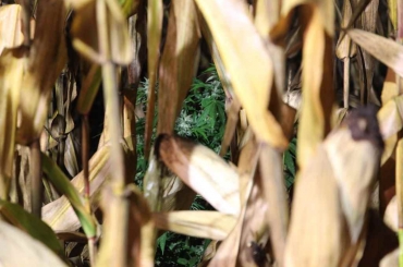 Az egyik lakiteleki kukoricatábla sorai között vadkendert termesztett a férfi.