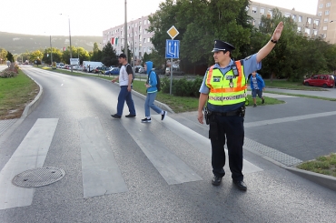 A rendőrök és a polgárőrök is segítik a gyalogosok közlekedését a Komárom-Esztergom megyei iskolák környezetében.