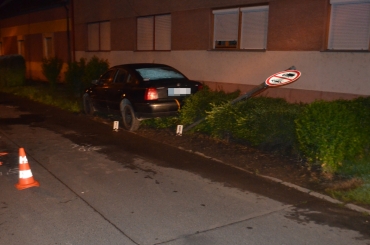 Felhajtott az útpadkára, bokornak és közlekedési táblának ütközött egy személygépkocsi Békéscsabán, a Bocskai utcában.