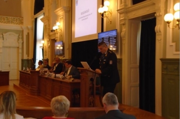 Dr. Mihály István r. dandártábornok a megyei közgyűlés előtt számolt be Pest megye 2015. évi közbiztonsági, bűnügyi helyzetének alakulásáról.