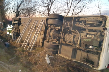 Megkezdődött a sérült autóbusz kiemelése.