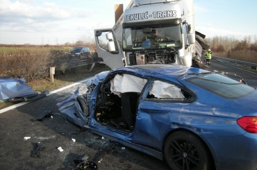 Lébény térségében egy személygépkocsi és egy tehergépjármű ütközött.